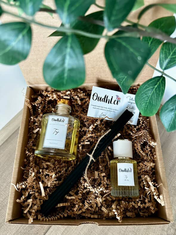 Envelop yourself—and your space—in the signature warmth of Oudh with the Essence & Aura Duo by Oudhlei. This elegant pairing features our exquisitely crafted Oudh Luxury Perfume (30 ml) and a beautifully designed Reed Diffuser Set, curated to bring sophistication to both your presence and your surroundings. Whether you're setting the tone for the day or creating a sanctuary at home, this duo harmonizes body and space in perfect aromatic balance.